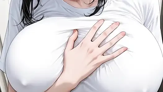 MILF wife has already started fucking on the bed, huge natural tits want to break out, will you touch them?